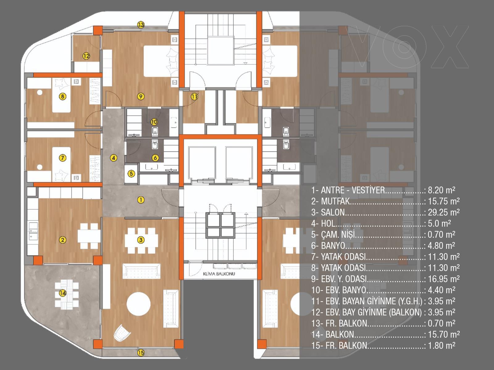 Şehrin kalbinde, değerli ve tercih edilen bir konumda yer alan VOX 2, geniş aileler için ideal yaşam alanları sunuyor. Toplamda 26 daireden oluşan bu proje, 3600 m² yaşam alanı ile sakinlerine ferah ve geniş bir yaşam alanı sağlıyor. Daireler, 3+1 tipinde olup, brüt 180 m², net ise 132 m² alana sahip. Projenin sunduğu olanaklar arasında basketbol sahası, oyun alanları ve muazzam peyzaj düzenlemeleri bulunuyor, bu da ailelerin sosyal ve fiziksel aktivitelerini en üst düzeye çıkarıyor. Aynı zamanda, jeneratör ve bahçe katı gibi ek özellikler de projeyi daha cazip kılıyor. Modern yaşamın tüm gereksinimlerini karşılayan bu proje, ailelerin rahat bir yaşam sürmesi için mükemmel bir seçenek. Hem huzurlu hem de dinamik bir yaşam arayanlar için ideal bir tercih.